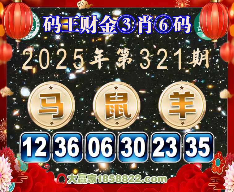 321期:【码王财金】 🎖️③肖⑥码🎖️【马鼠】开:羊23
