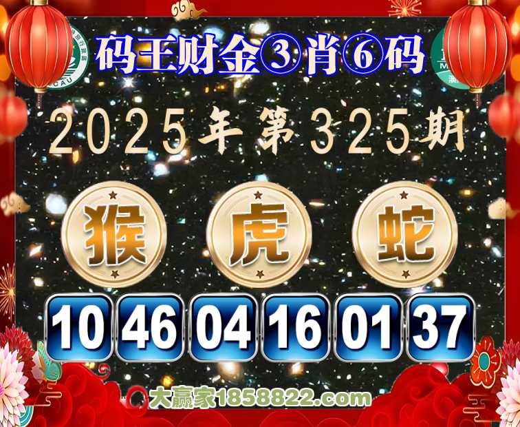 325期:【码王财金】 🎖️③肖⑥码🎖️【猴蛇】开:虎04