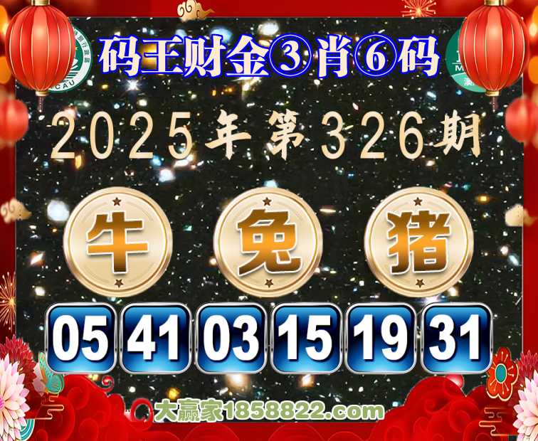 326期:【码王财金】 🎖️③肖⑥码🎖️【牛兔】开:猪19