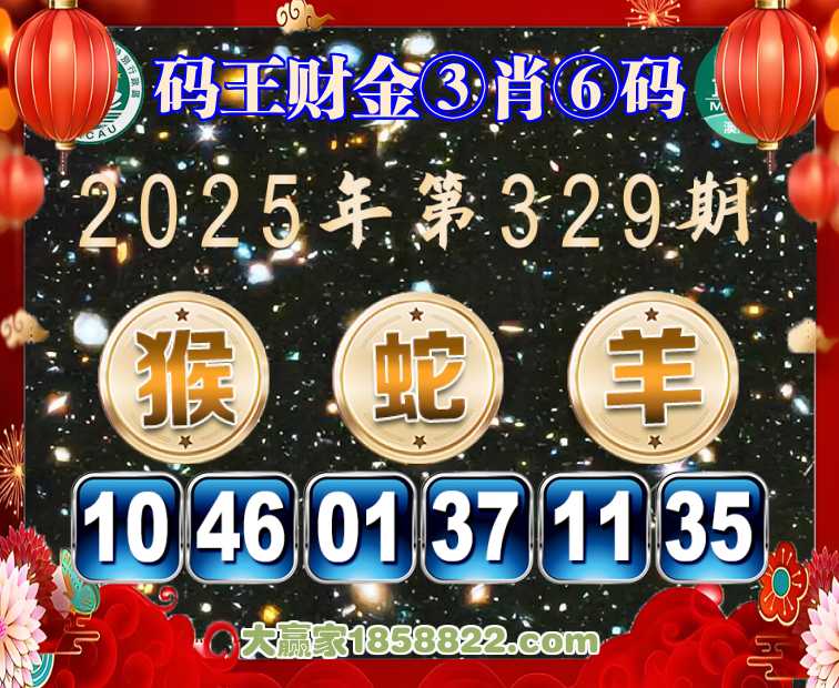 329期:【码王财金】 🎖️③肖⑥码🎖️【猴蛇羊】开:牛17