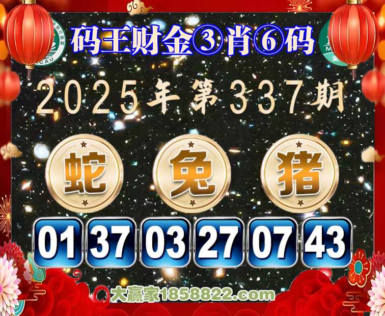 337期:【码王财金】 🎖️③肖⑥码🎖️【蛇兔猪】开:鸡09