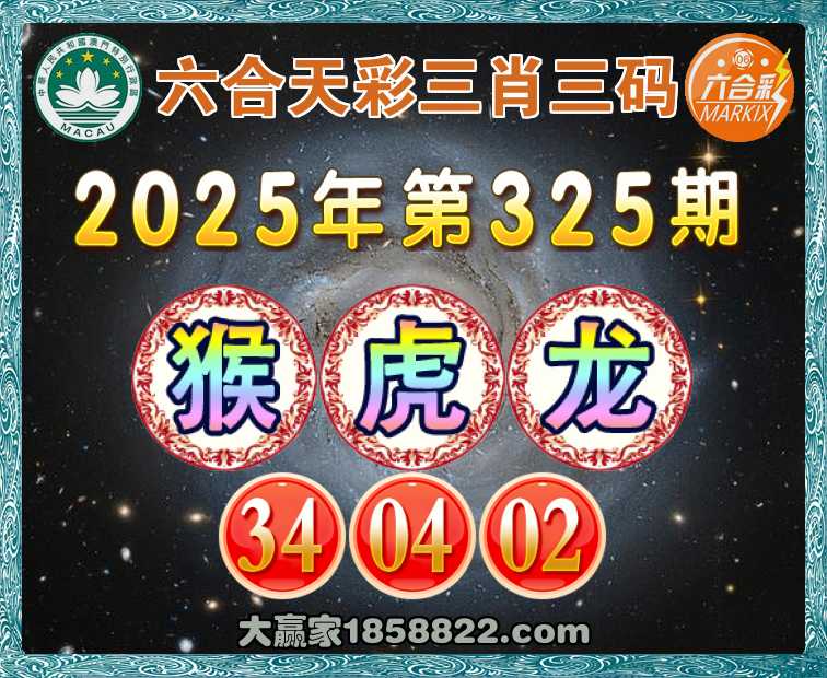 325期:《六合天彩》 🩴三肖三码🩴【猴龙】【34.04.02】开:虎04